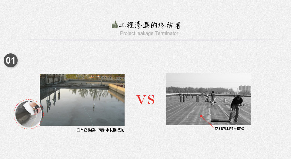 屬新型特效聚合物防水涂料,半剛性半柔性,一次施工雙重防水,粘結力強,耐水長期浸泡,防水層被破壞也不易漏水的新型聚合物防水涂料。被廣泛應用于地下室防水,地下車庫防水等各種地下建筑防水工程及廚房衛生間防水,屋面防水等各種建筑防水工程。
